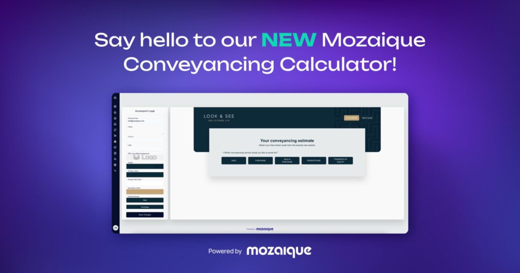 | Customisable Design | Customisable design for you to upload your firms logo, colours, privacy policy & legal information (Company Reg/SRA ID etc.) |